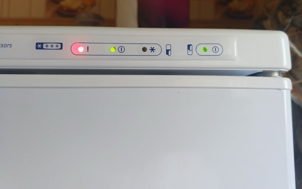 Предупреждающий красный индикатор: Часто загорается, когда температура в камере не достигает нужного уровня или когда рабочий цикл нарушен (например, компрессор работает непрерывно по причине отсутствия хладагента в системе).